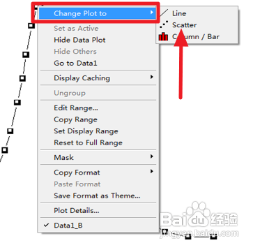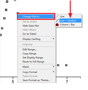 4、在散点图的基础上获得趋势线。在坐标中的点上右击“Change Plot to”—“Line +Symbol”。