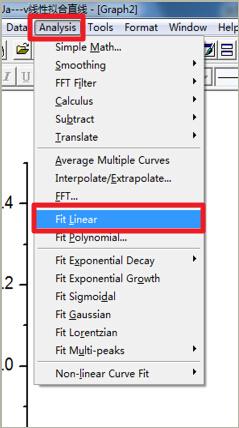 8、线性拟合。实际应用做多的拟合即是线性拟合。操作如下:Analysis----Fit Linear。